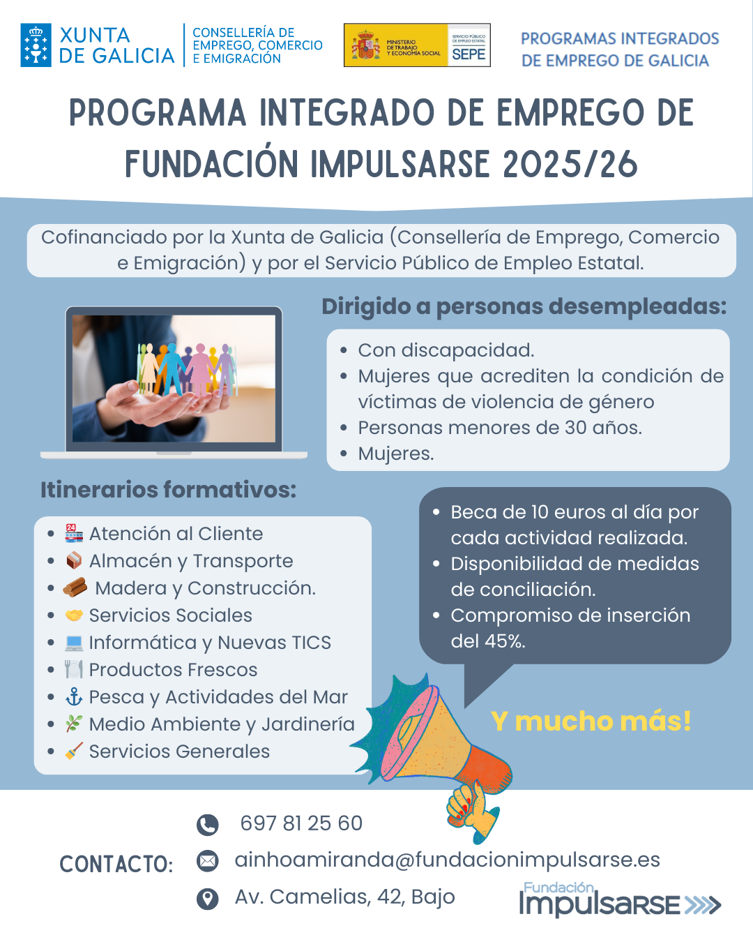 - Colaboración con empresas, entidades sociales y servicios de empleo para potenciar contrataciones.